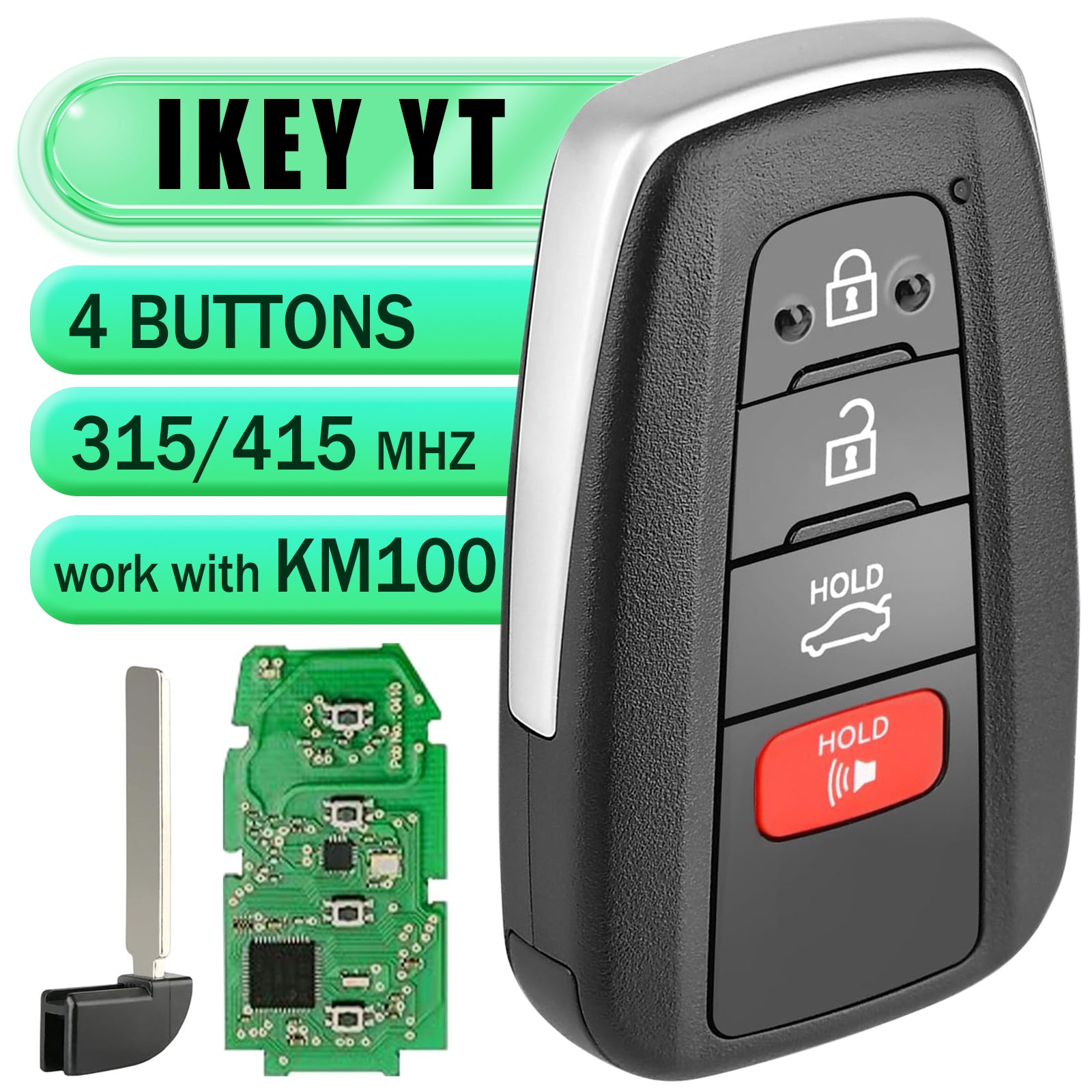 The Autel IKEY is a universal programmable smart key that can be programmed to replace smart keys for more than 3000+ vehicles including those made by Toyota, BMW, Hyundai, Nissan, Chryslers, Honda, and General Motors. The IKEY is an OE-quality, 315M/433M frequency programmable smart key that supports two to seven button configurations. Battery (CR2032) is required and not included. Use the KM100 tablet to program the IKEY for supported vehicles in as little as a minute. Emergency Blade included.