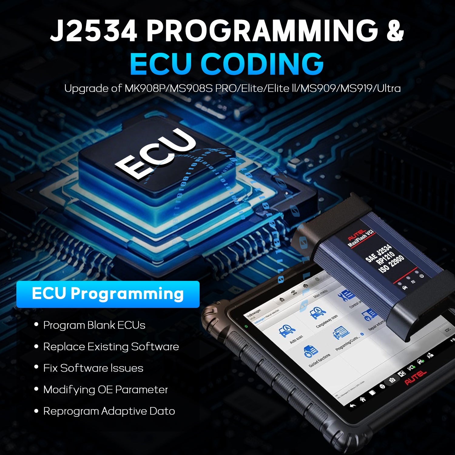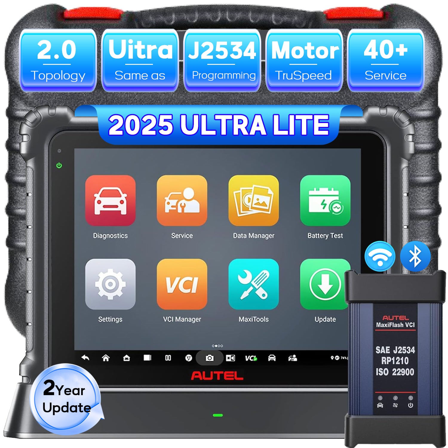 - The Ultra Lite includes Autel’s next-gen MaxiFlash VCI J2534, allowing full OEM-level ECU Programming and Coding.