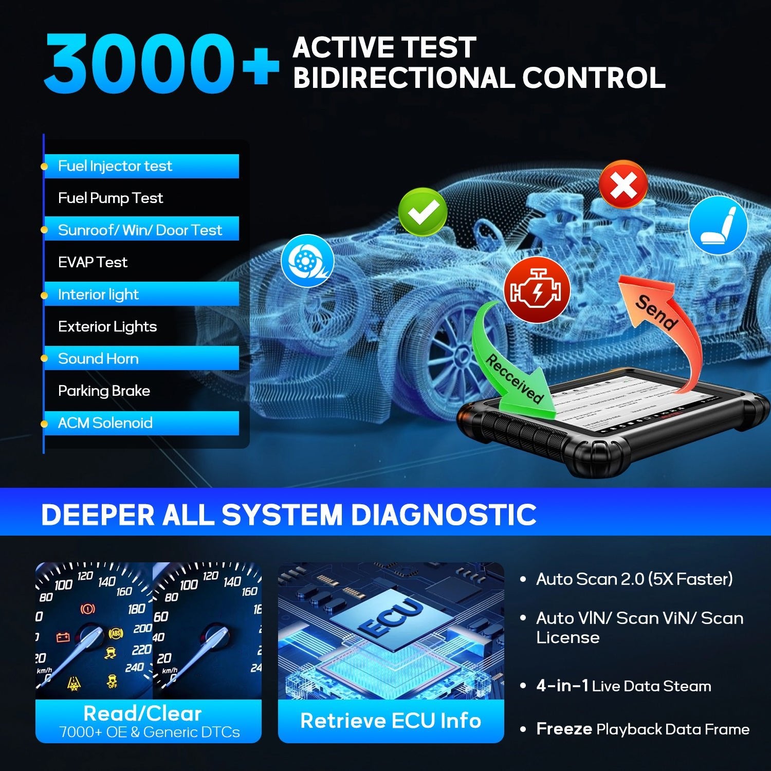 3000+ Active Tests & Full-System Diagnosis