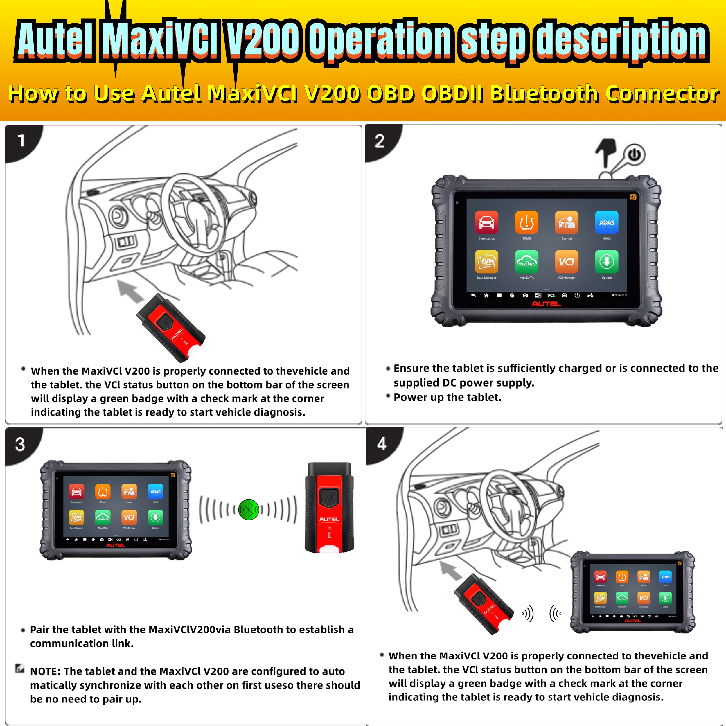 Autel MaxiSys MaxiVCI VCI 200 Bluetooth Diagnostic Interface, Works with ITS600, MS906MAX, MK906PRO, MS906PRO-TS, KM100, BT608 ...